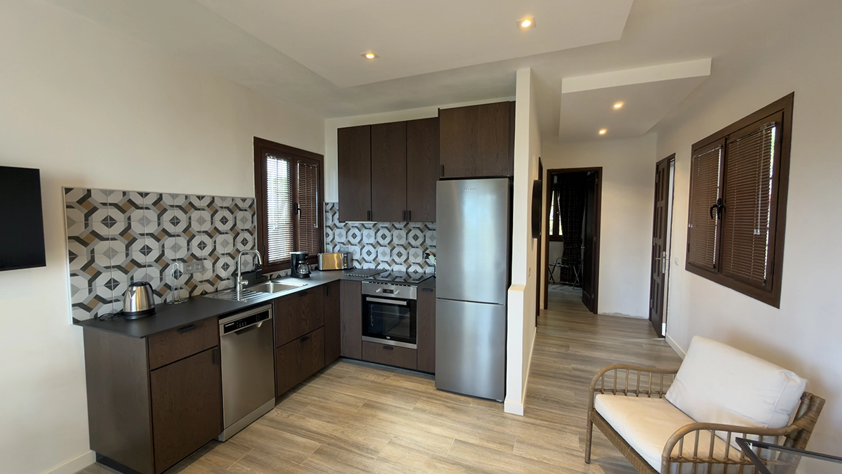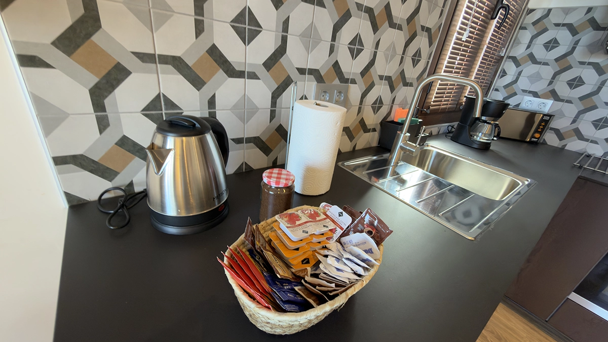 Imagina llegar y tenerlo todo preparado para funcionar desde el primer minuto. Cada apartamento está completamente equipado y orientado a la comodidad real: cocina moderna con lavavajillas, microondas, cafetera de filtro e italiana, tostadora, sandwichera, hervidor, menaje completo… y espacio suficiente para cocinar sin improvisar. Un desayuno pausado o una cena casera aquí salen sin esfuerzo.