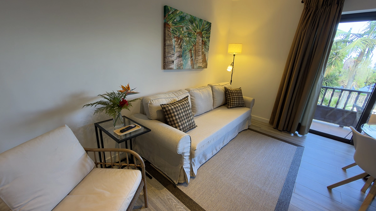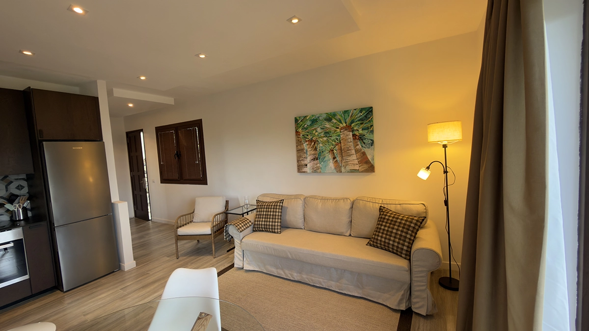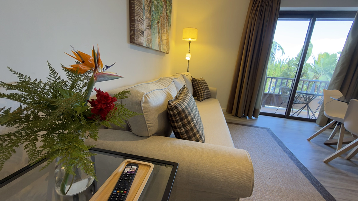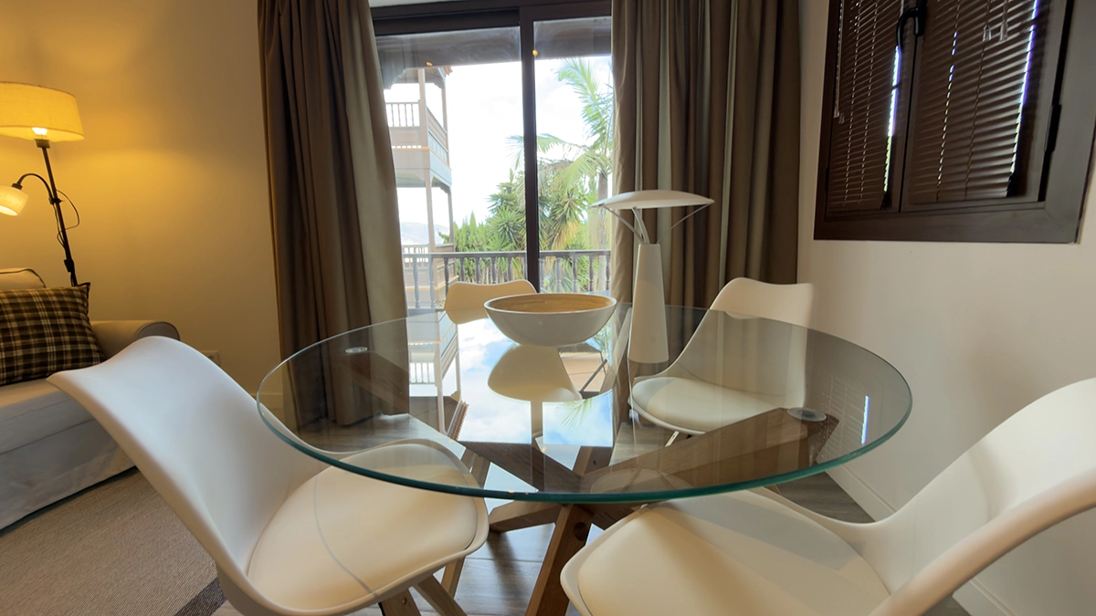 El descanso está igual de cuidado. Los apartamentos cuentan con Smart TV con streaming, satélite Astra y Wi-Fi de alta velocidad, para que puedas desconectar o trabajar si lo necesitas. Los espacios son luminosos y prácticos, y todos los alojamientos incluyen balcón con vistas al mar, donde las primeras luces del día son parte de la experiencia.