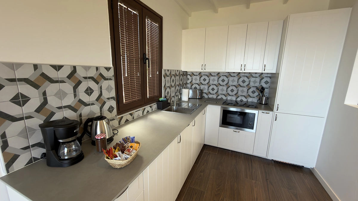 Imagina llegar y tenerlo todo preparado para funcionar desde el primer minuto. Cada apartamento está completamente equipado y orientado a la comodidad real: cocina moderna con lavavajillas, microondas, cafetera de filtro e italiana, tostadora, sandwichera, hervidor, menaje completo… y espacio suficiente para cocinar sin improvisar. Un desayuno pausado o una cena casera aquí salen sin esfuerzo.
