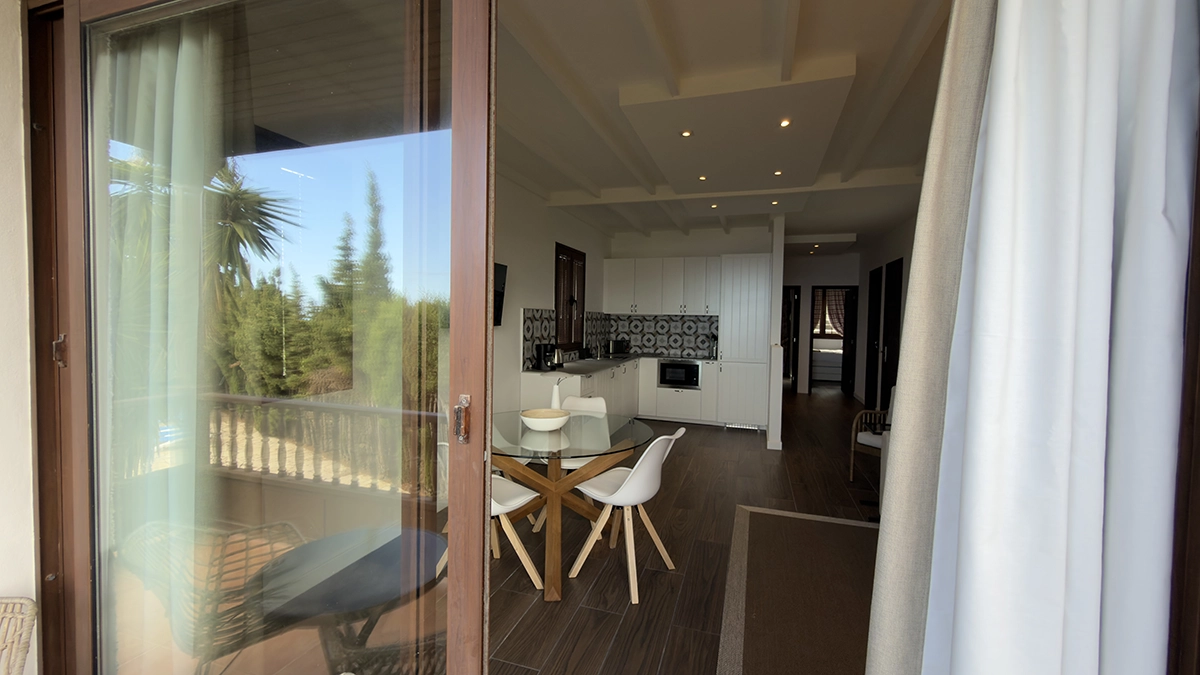Pero donde AlmaBella realmente marca la diferencia es en las zonas comunes: piscina abierta todo el año, sauna bajo solicitud, barbacoa y horno exterior, cancha de tenis, y conexión Wi-Fi en todo el complejo, incluso al aire libre. Son espacios diseñados para desconectar sin renunciar a nada.