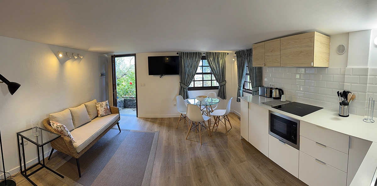 Breña Baja combina lo mejor de ambos mundos: cercanía inmediata a Santa Cruz de La Palma para compras, restaurantes y servicios, y suficiente distancia del bullicio para garantizar descanso, silencio y privacidad durante toda la estancia.
