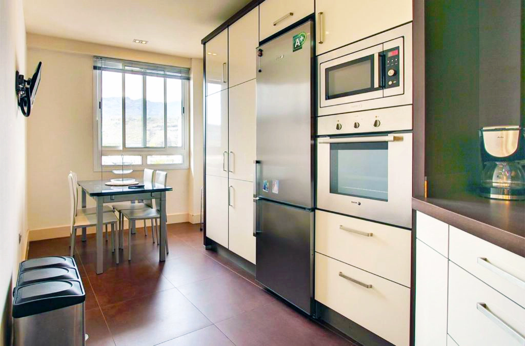 La cocina está pensada para cocinar de verdad, no para salir del paso: suficientemente grande, con lavavajillas, horno y microondas, nevera, tostadora, cafetera y hervidor, además de menaje y utensilios completos. Preparar un desayuno lento o una cena improvisada sale igual de fácil.